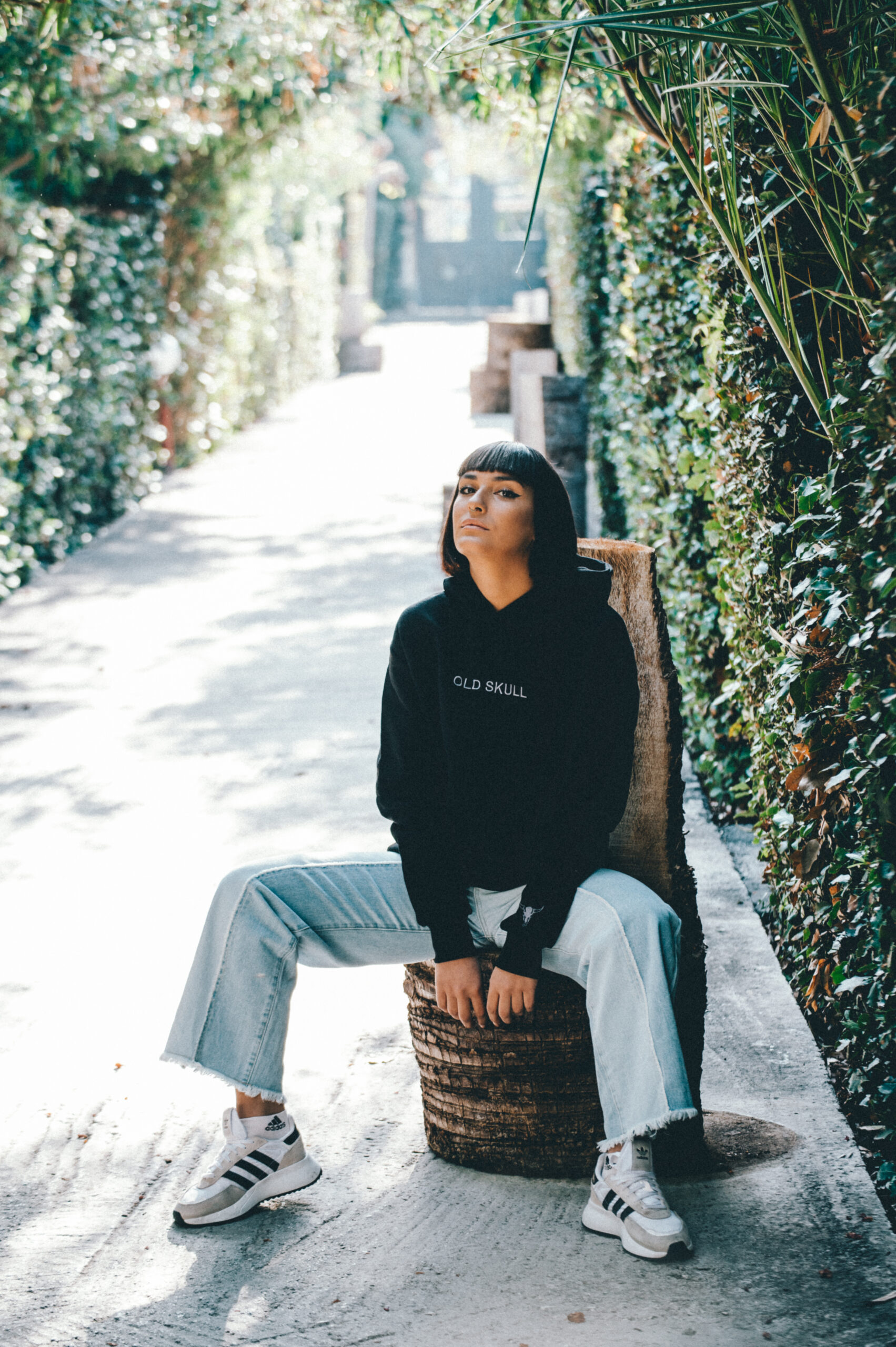 Old skull hoodie with an anthracite embroidery logo in front & on sleeve