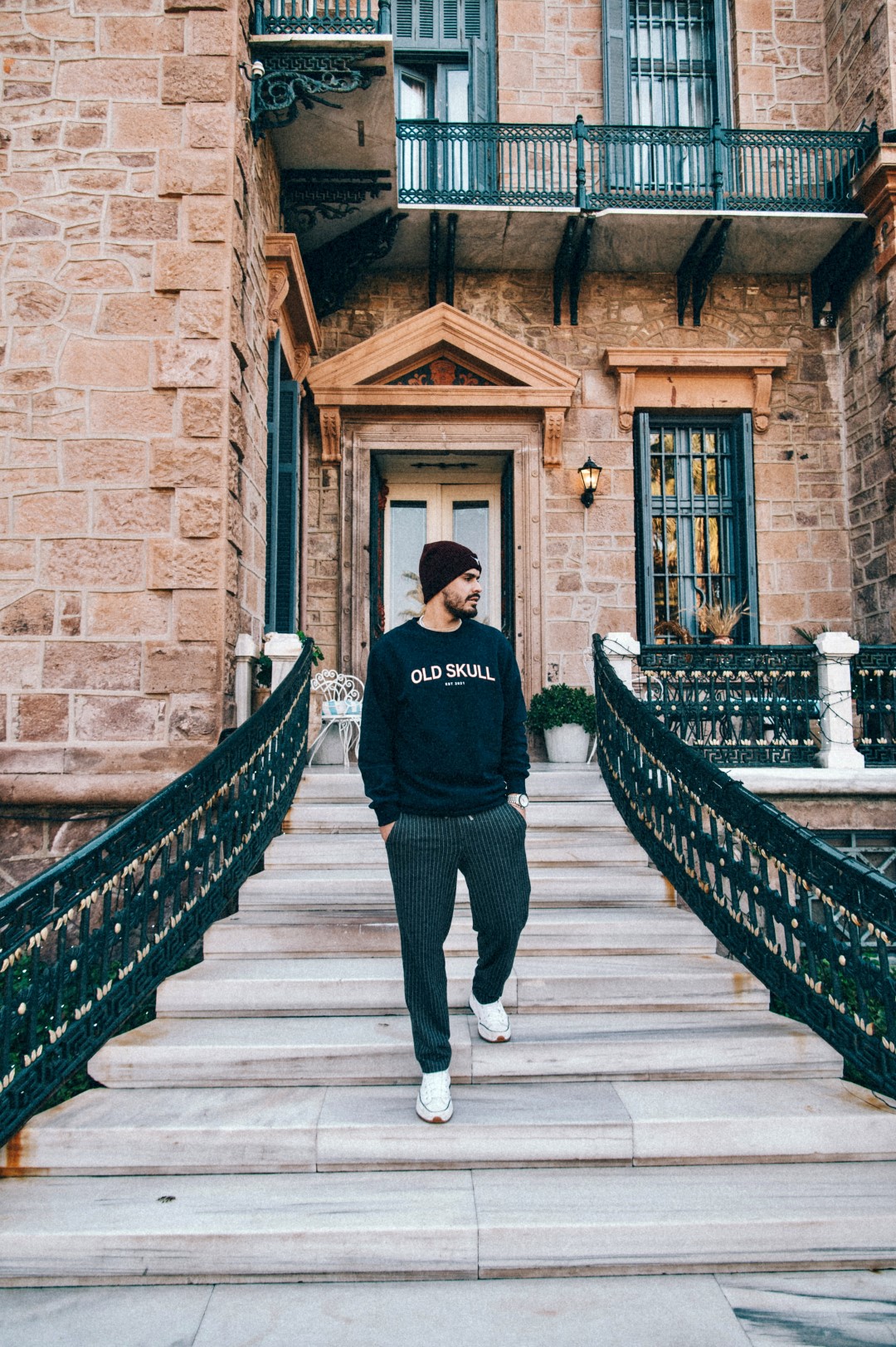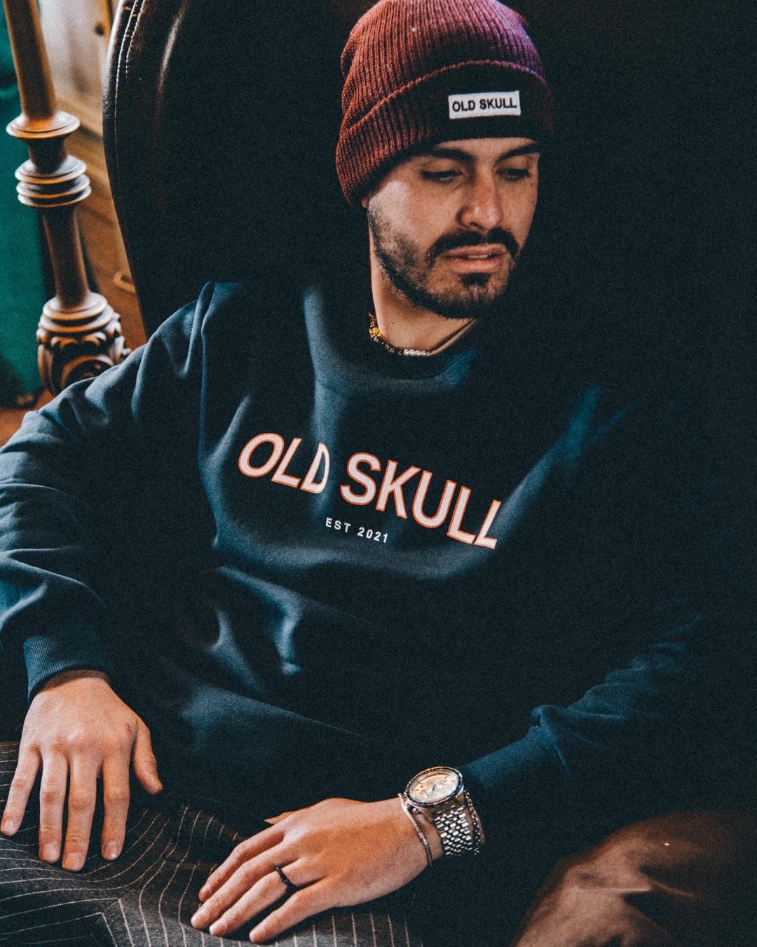 Old skull crewneck with white logo print