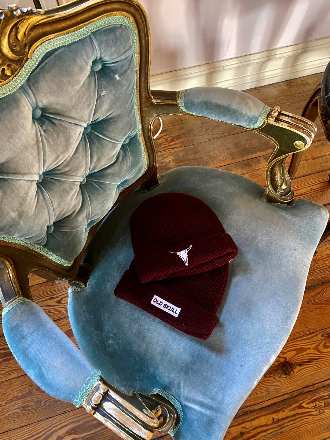 Bordeaux beanie with old skull logo